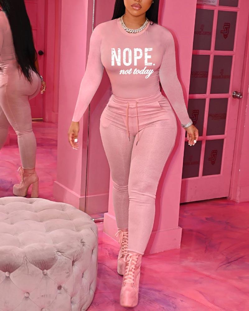 Letter Print Long Sleeve Top & Drawstring Pants Set