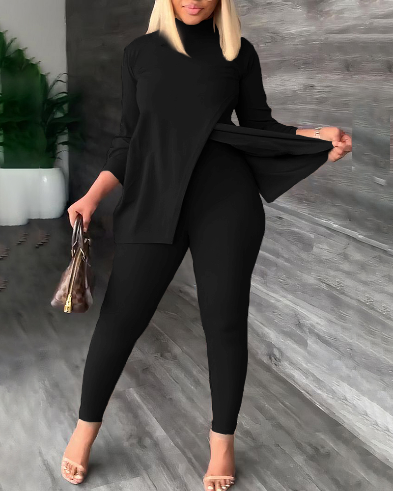 Style:Casual Type:Pants Sets Material:95%Polyester,5%Elastane Neckline:Mock Neck Sleeve Style:Long Sleeve Length:Long Pattern Type:Plain Fit Type:Regular Occasion:Daily Package Include:Pants Sets