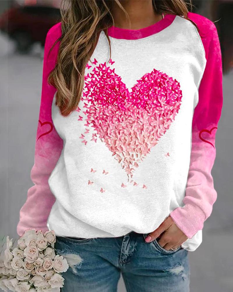 Style:Casual Type:Tee Material:95%Polyester,5%Elastane Neckline:Round Neck Sleeve Style:Long Sleeve Length:Regular Pattern Type:Heart Fit Type:Regular Occasion:Daily Package Include:1*Top