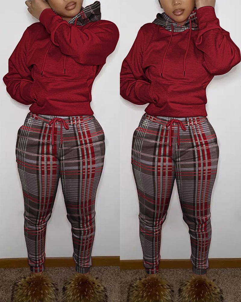 Plaid Print Long Sleeve Hoodie & Pants Set