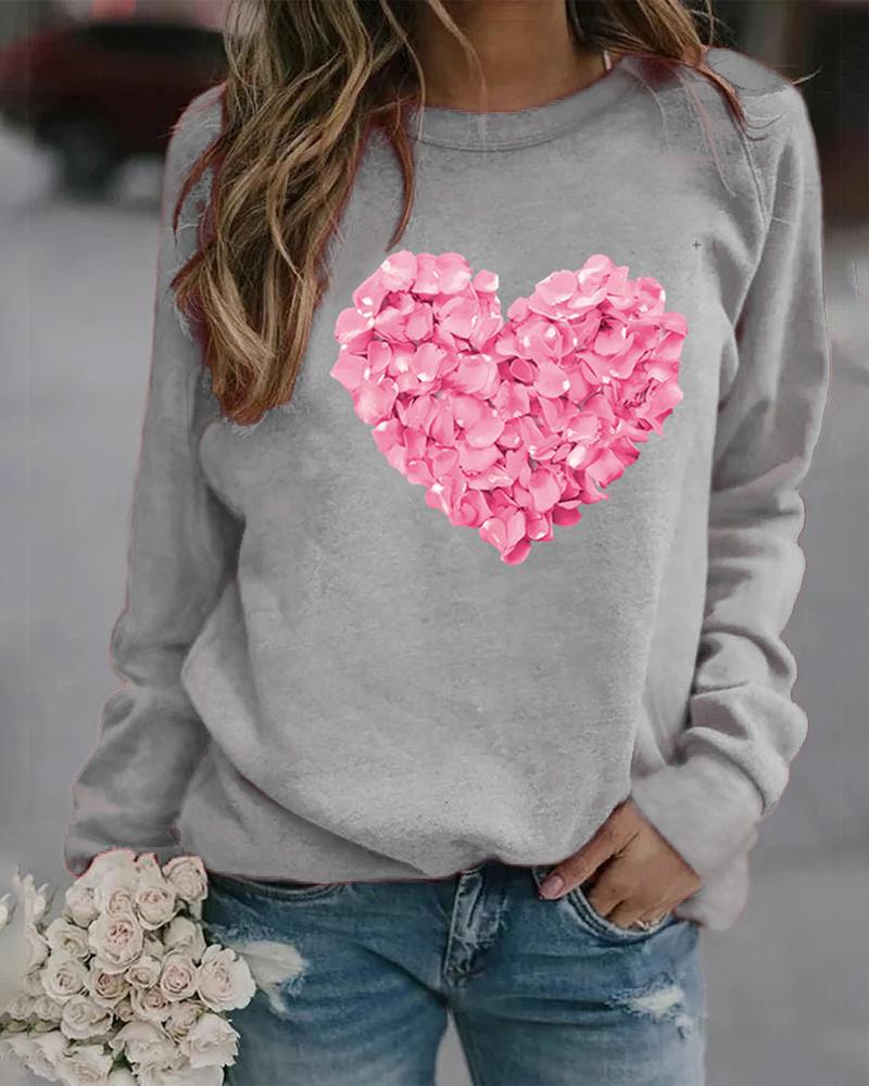 Valentine's Day Floral Heart Print Long Sleeve Top
