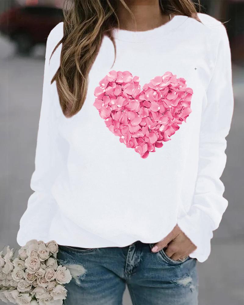 Valentine's Day Floral Heart Print Long Sleeve Top