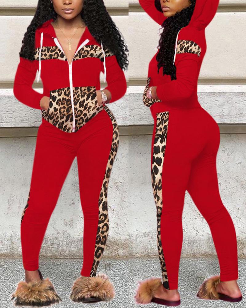Style:Casual,Sporty Type:Sweatshirt Sets,Pants Sets Material:Polyester Neckline:Hooded Sleeve Style:Long Sleeve Length:Long Pattern Type:Leopard Decoration:Zipper Fit Type:Skinny Occasion:Daily Package Include:1*Pants Set