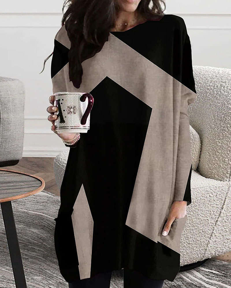 Style:Casual Type:Tee Material:Polyester Neckline:Round Neck Sleeve Style:Long Sleeve Length:Regular Pattern Type:Geometric Decoration:Pocket Fit Type:Regular Occasion:Daily Package Include:1*Top
