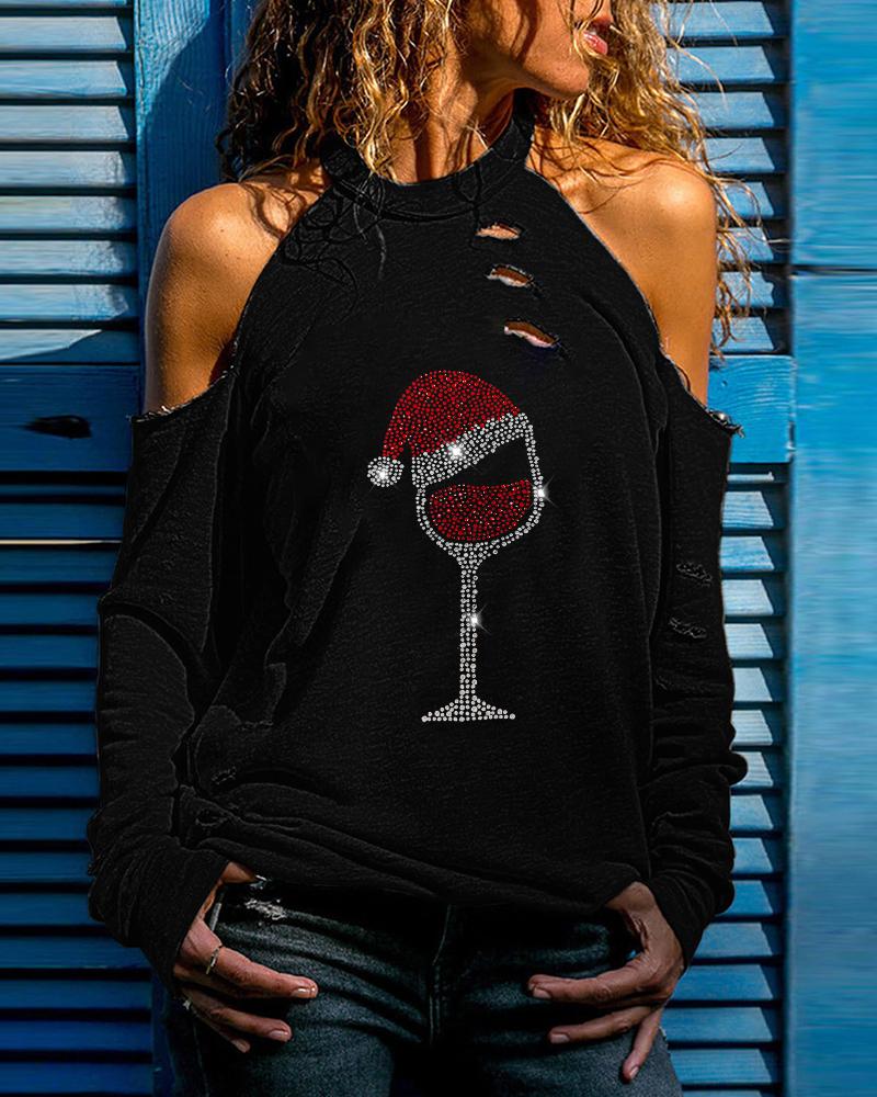 Style:Casual,Chic Type:Tee Material:95%Polyester,5%Elastane Neckline:Cold Shoulder Sleeve Style:Long Sleeve Length:Regular Pattern Type:Christmas,Graphic Decoration:Cutout Fit Type:Regular Occasion:Christmas,Daily Package Include:1*T-Shirt