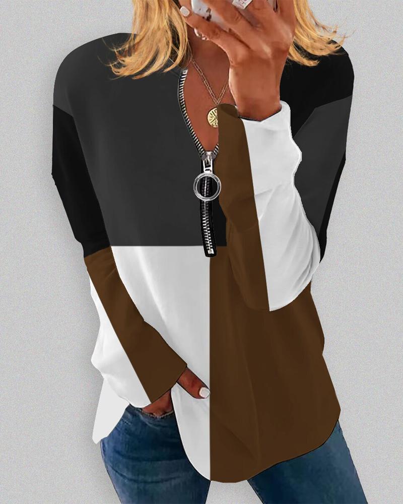 Style:Casual Type:Tee Material:Polyester Neckline:Round Neck Sleeve Style:Long Sleeve Length:Regular Pattern Type:Colorblock Decoration:Zipper Fit Type:Regular Occasion:Daily Package Include:1*Top