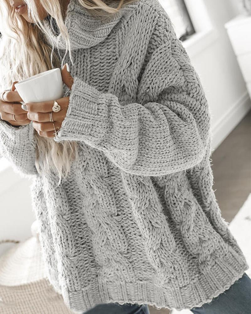 Long Sleeve High Neck Cable Knit Sweater