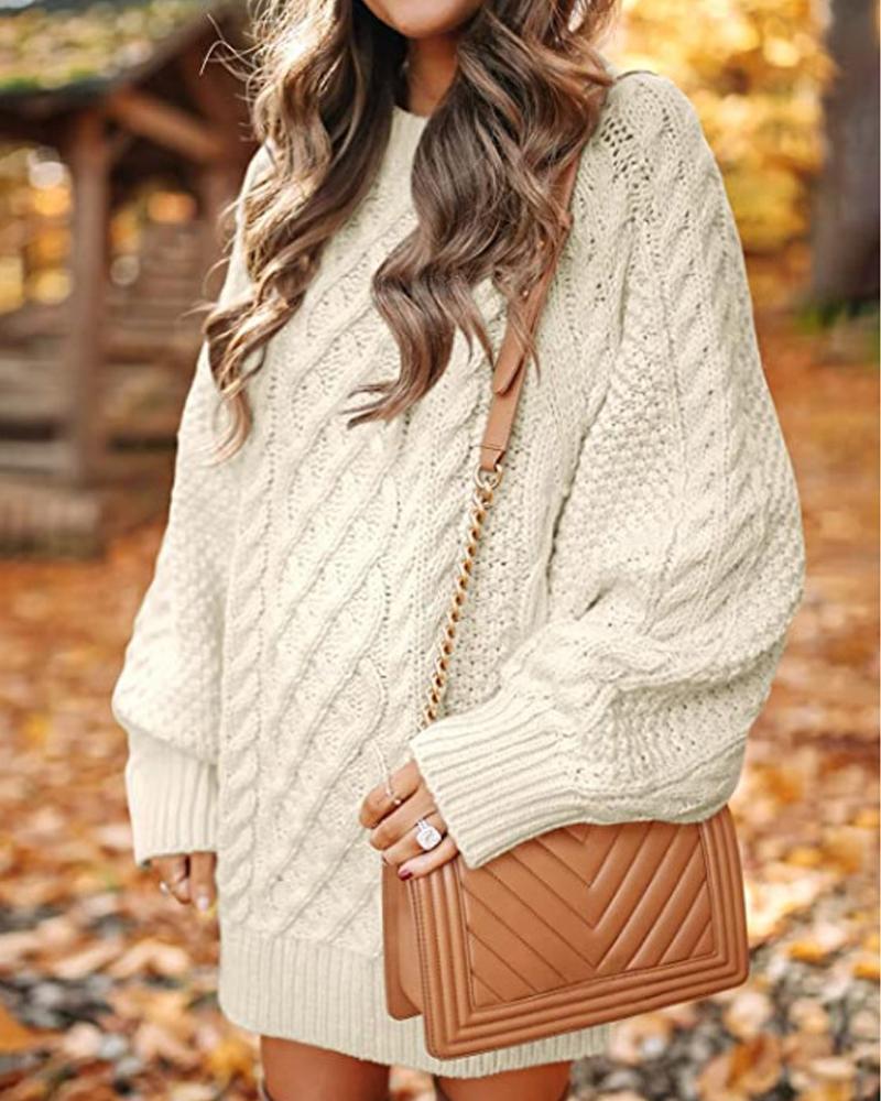 Lantern Sleeve Cable Knit Sweater Dress