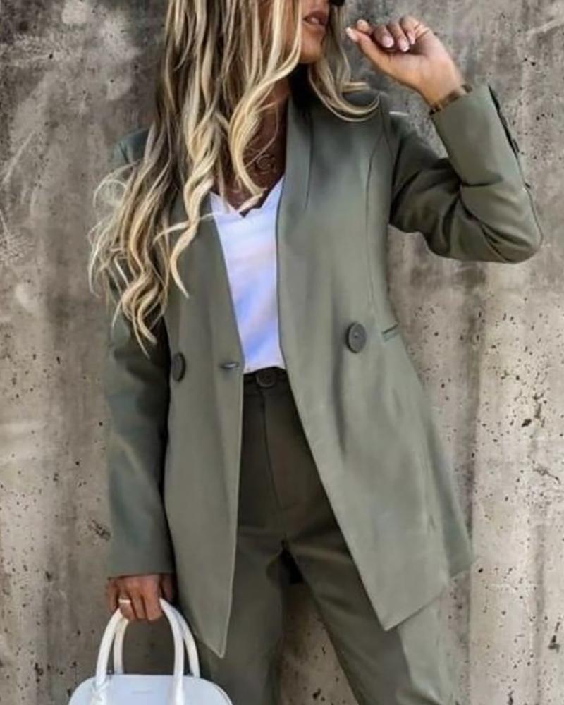 Plaid Print Flap Detail Double Breasted Blazer Coat