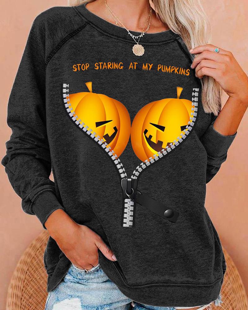 Halloween Pumpkin Print Zipper Design Sweatshirt