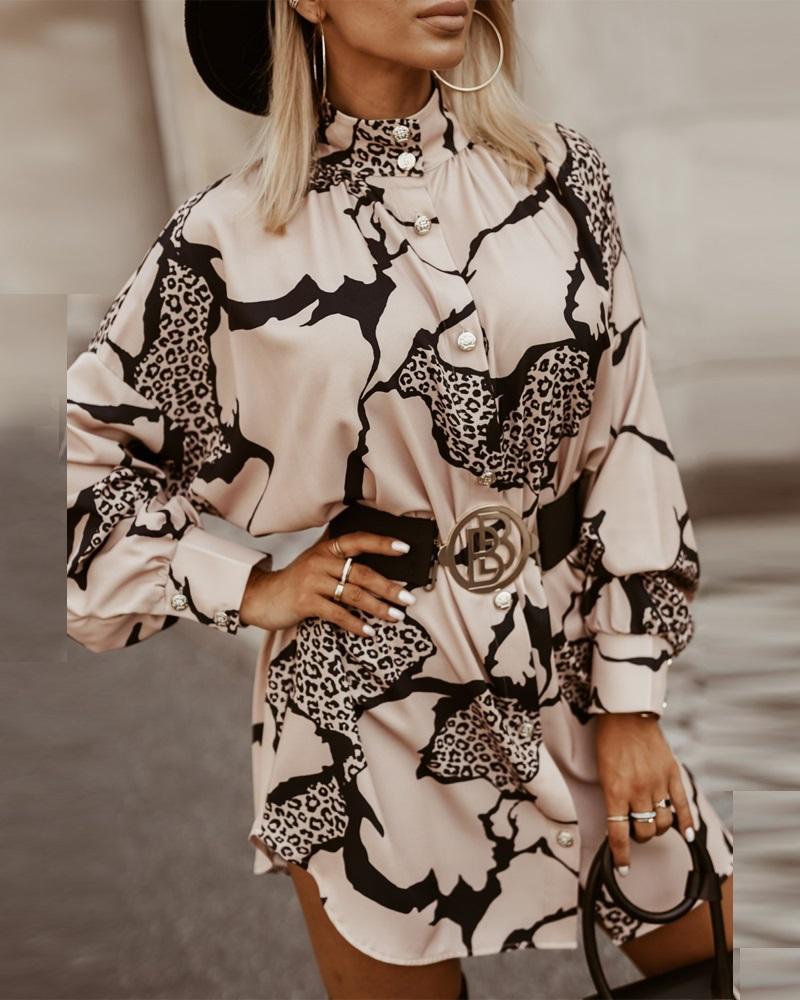 Style:Casual Type:Shirt Material:97%Polyester,3%Elastane Neckline:Stand Collar Sleeve Style:Long Sleeve Length:Mini Pattern Type:Leopard Decoration:Button Fit Type:Regular With Belt:No Occasion:Daily Package Include:1*Dress(Without Belt) Fabric Elasticity:Slight Stretch