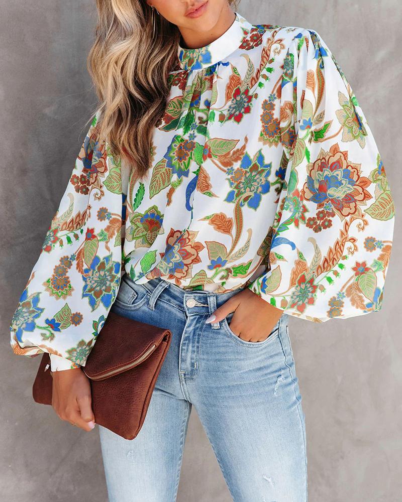 Style:Casual Type:Blouses Material:Polyester Neckline:Mock Neck Sleeve Style:Lantern Sleeve,Long Sleeve Length:Regular Pattern Type:Plants Fit Type:Regular Occasion:Daily Package Include:1* Blouse