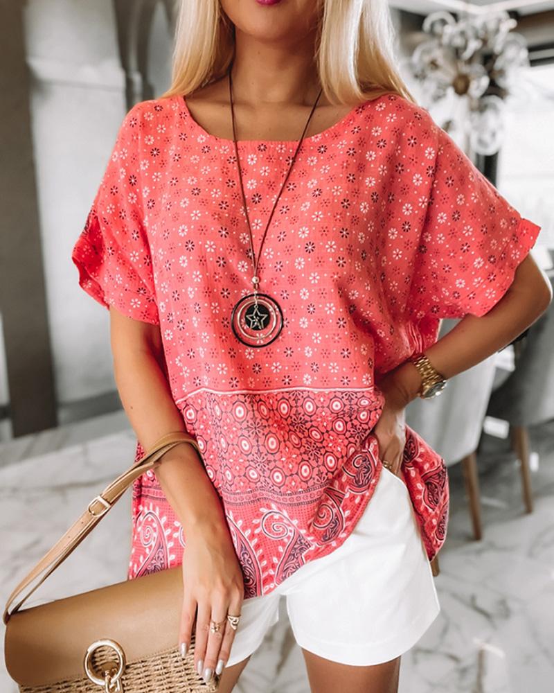 Style:Casual,Chic Type:Regular Material:Polyester Neckline:Round Neck Sleeve Style:Short Sleeve Length:Regular Pattern Type:Ditsy Floral,Paisley Fit Type:Regular Occasion:Daily Package Include:1*T-Shirt