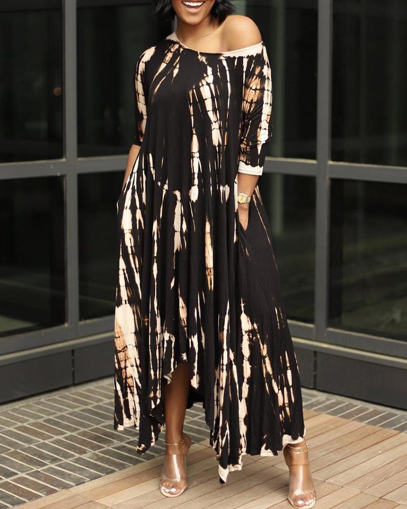 Tie Dye Print Pocket Design Maxi Dress