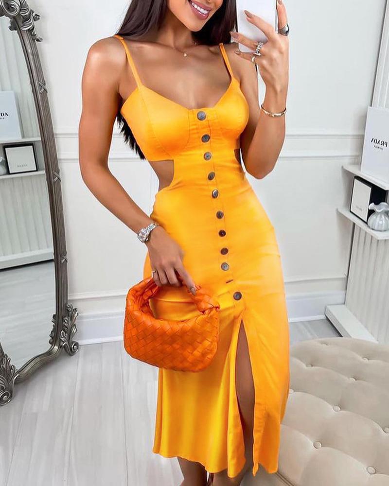 Button Decor Cutout Backless Slit Bodycon Dress