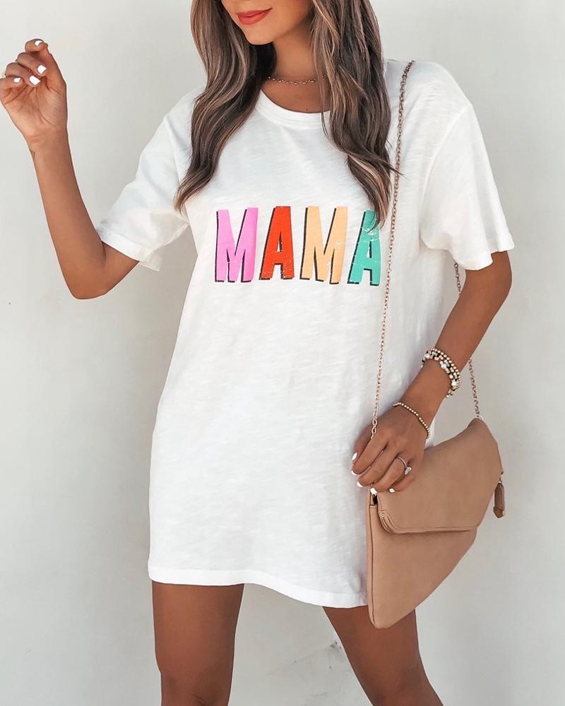 Mother's Day Letter Print Short Sleeve Casual Dress