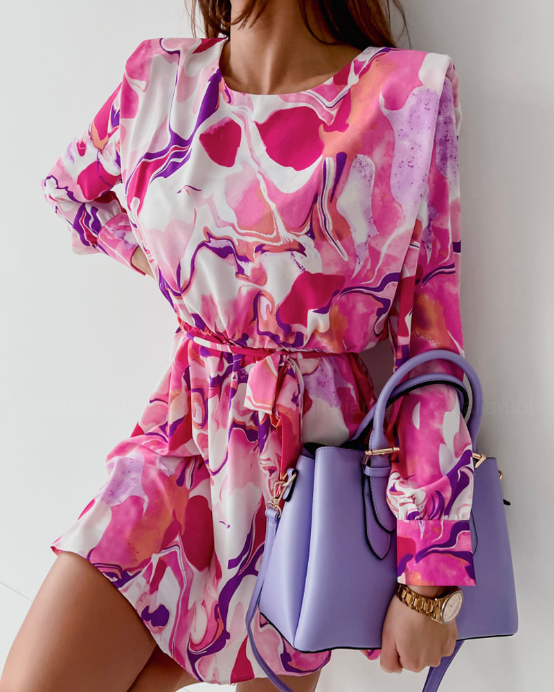 Style:Casual,Chic Type:A Line Material:97%Polyester,3%Elastane Neckline:Round Neck Sleeve Style:Long Sleeve Length:Mini Pattern Type:All Over Print Fit Type:Regular With Belt:Yes Occasion:Daily Package Include:1*Dress(With Belt) Fabric Elasticity:Slight Stretch