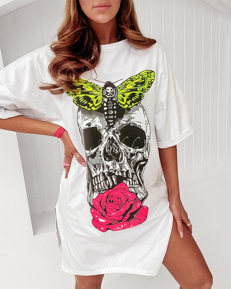 Style:Casual,Chic Type:Slit Material:95%Polyester,5%Elastane Neckline:Round Neck Sleeve Style:Short Sleeve Length:Mini Pattern Type:Animal,Floral,Graphic Decoration:Slit Fit Type:Regular Occasion:Daily Package Include:1* Dress