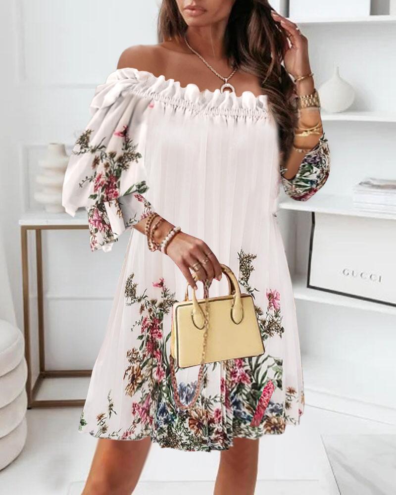 Floral Print Off Shoulder Pleated Casual Dress