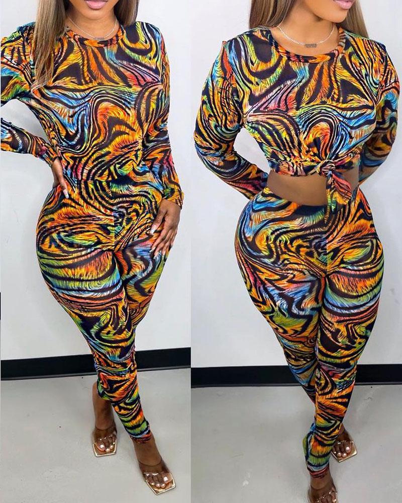 Style:Casual,Chic Type:Pants Sets Material:Polyester Neckline:Round Neck Sleeve Style:Long Sleeve Length:Long Pattern Type:Abstract Fit Type:Skinny Occasion:Daily Package Include:Pants Set