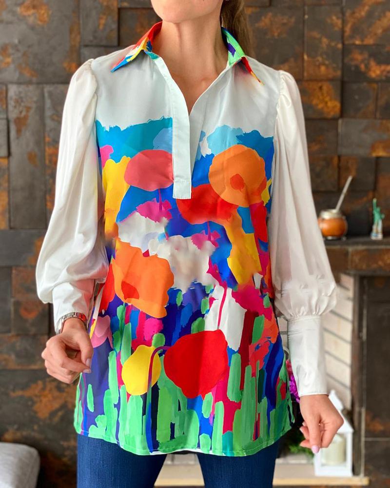 Style:Casual,Chic Type:Shirt Material:Polyester Neckline:Turn-down Collar Sleeve Style:Lantern Sleeve,Long Sleeve Length:Regular Pattern Type:Abstract Decoration:Lantern Sleeve Fit Type:Regular Occasion:Daily Package Include:1*Shirt