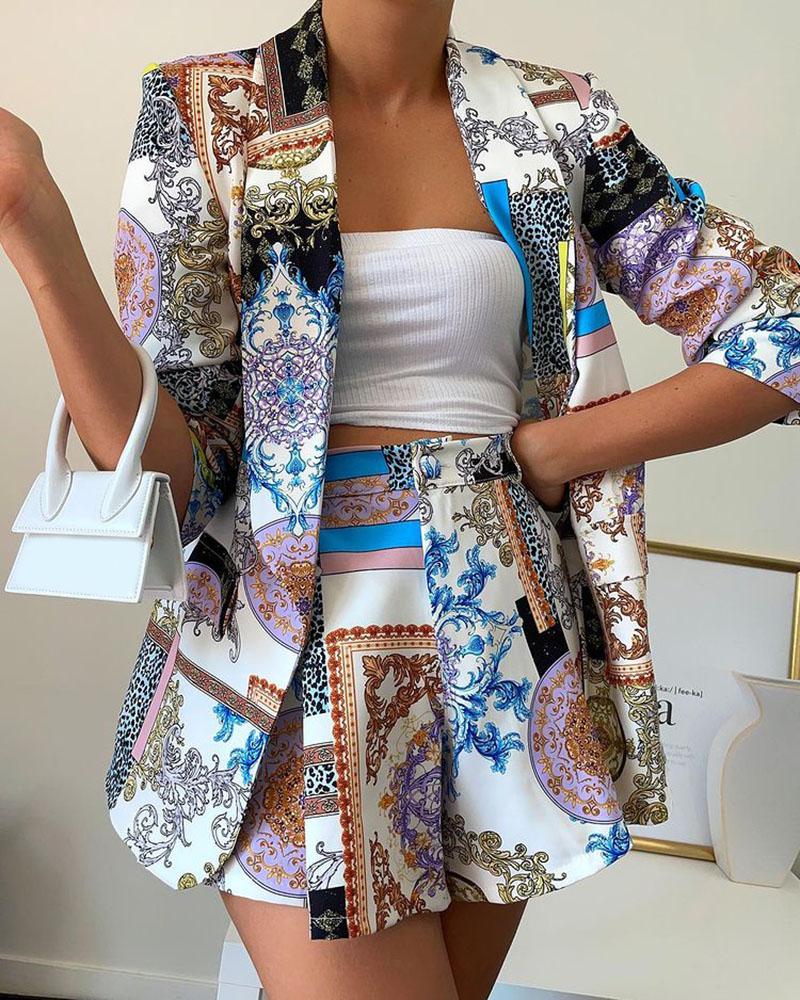 Baroque Print Shawl Collar Blazer & Shorts Set