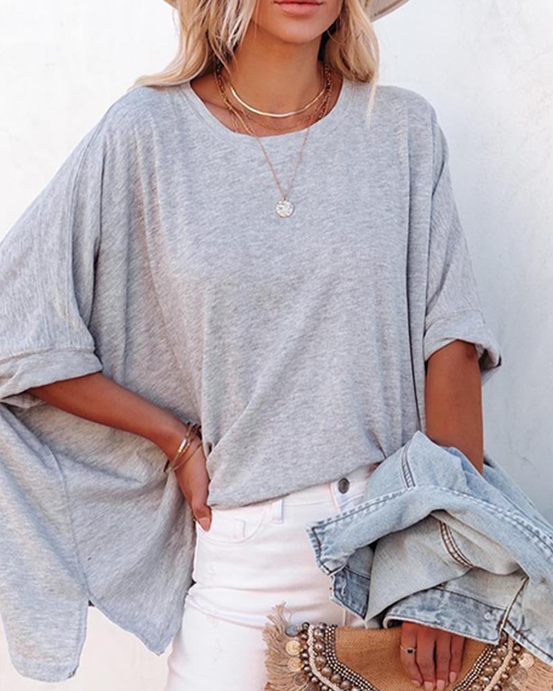 Style:Casual,Chic Type:Tee Material:95%Polyester,5%Elastane Neckline:Round Neck Sleeve Style:Batwing Sleeve,Half Sleeve Length:Regular Pattern Type:Plain Decoration:Batwing Sleeve,Slit Fit Type:Oversized Occasion:Daily Package Include:1*T-Shirt