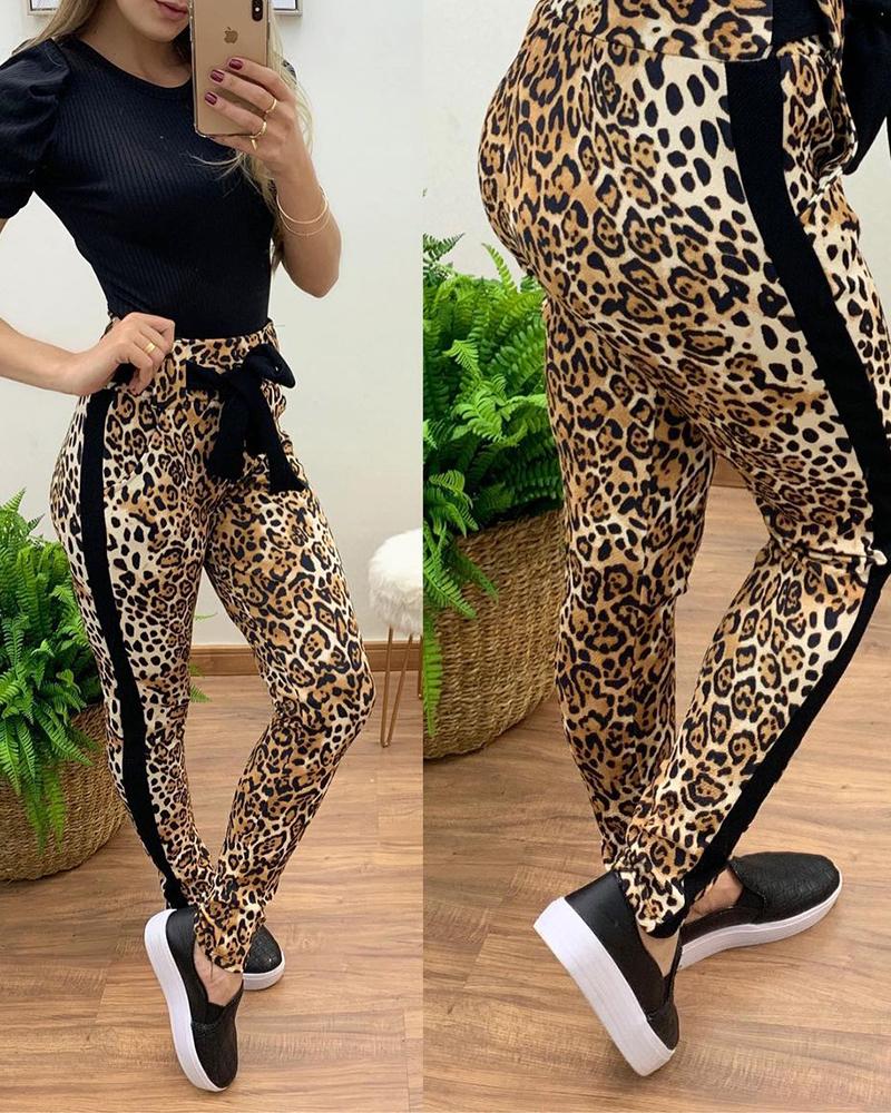 Style:Casual,Chic Type:Skinny Pants Material:95%Polyester,5%Elastane Length:Long Pattern Type:Leopard,Striped Decoration:Pocket,Tied Detail Fit Type:Skinny Occasion:Daily Package Include:1*Pants