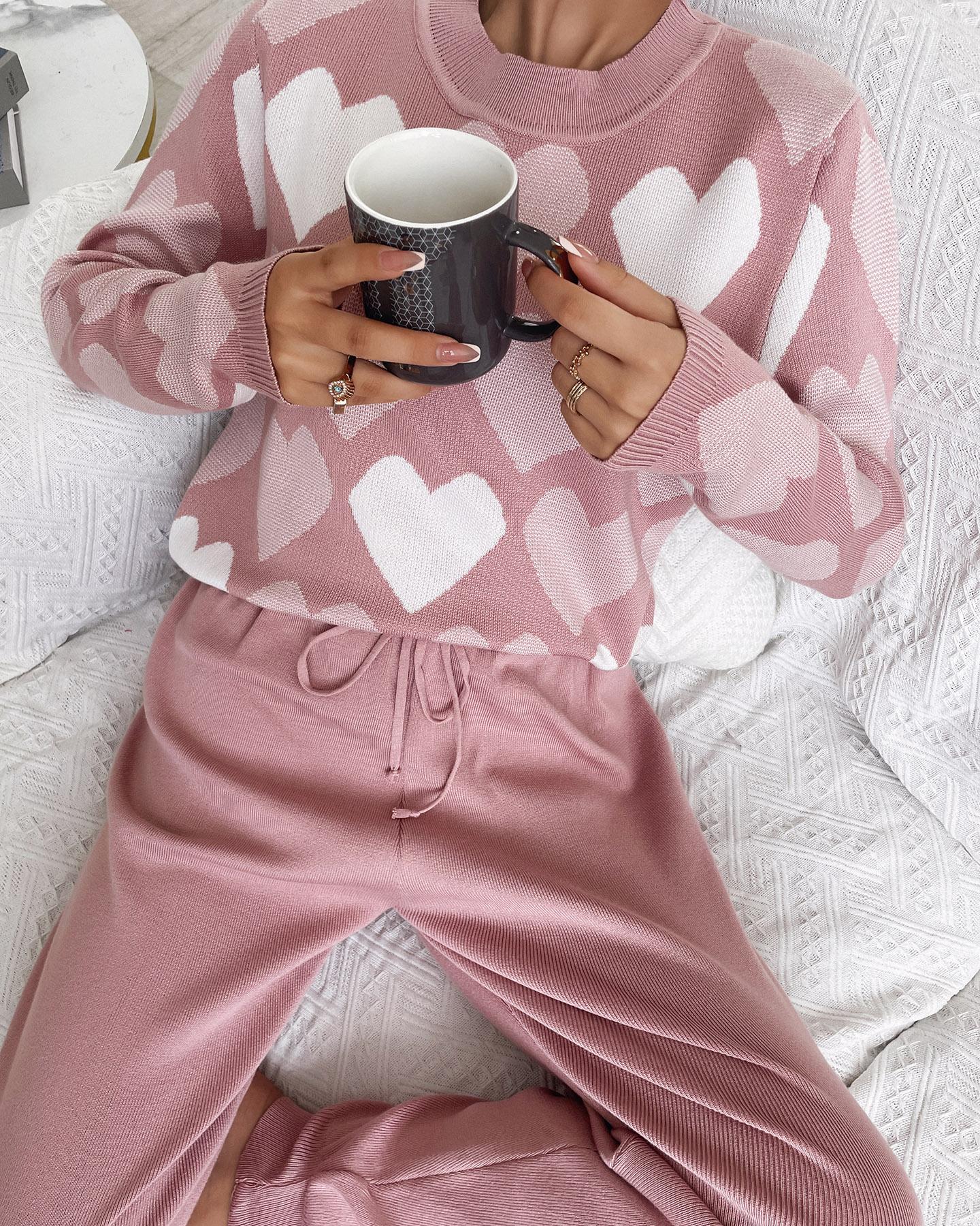 Style:Casual Type:Pants Sets,Sweatpants Sets Material:Acrylic Neckline:Round Neck Sleeve Style:Long Sleeve Length:Long Pattern Type:Heart,Plain Decoration:Drawstring Fit Type:Regular Occasion:Daily Package Include:Pants Sets