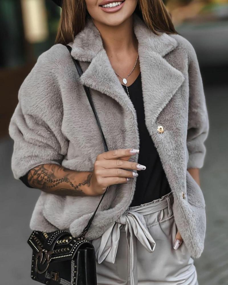 Button Front Long Sleeve Fuzzy Coat