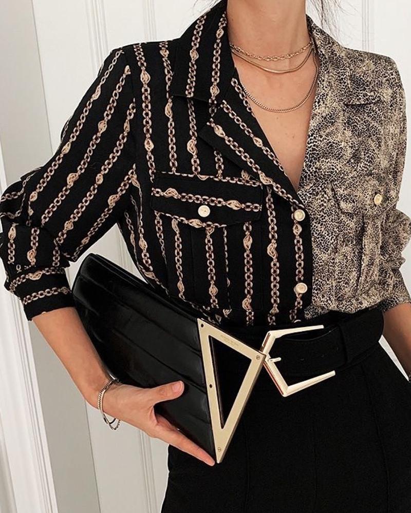 Style:Casual,Chic Type:Shirt Material:Polyester Neckline:Turn-down Collar Sleeve Style:Long Sleeve Length:Regular Pattern Type:Chain,Snakeskin Decoration:Button,Pocket Fit Type:Regular Occasion:Daily Package Include:1*Shirt