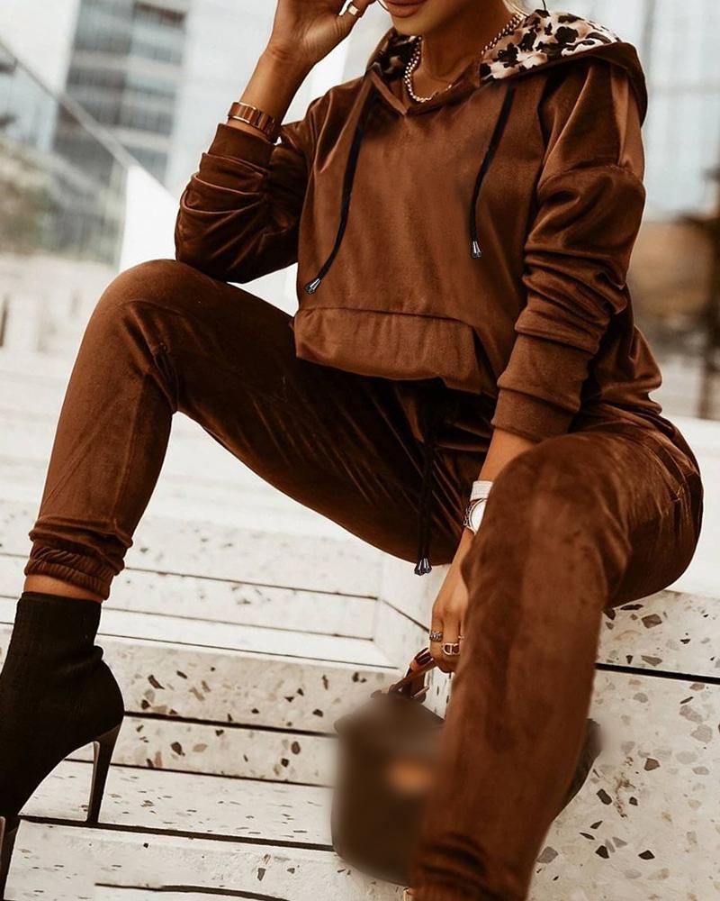 Style:Casual,Chic Type:Pants Sets,Sweatpants Sets,Sweatshirt Sets Material:Velvet Neckline:Hooded Sleeve Style:Long Sleeve Length:Long Pattern Type:Plain Decoration:Pocket Fit Type:Regular Occasion:Daily Package Include:Pants Set