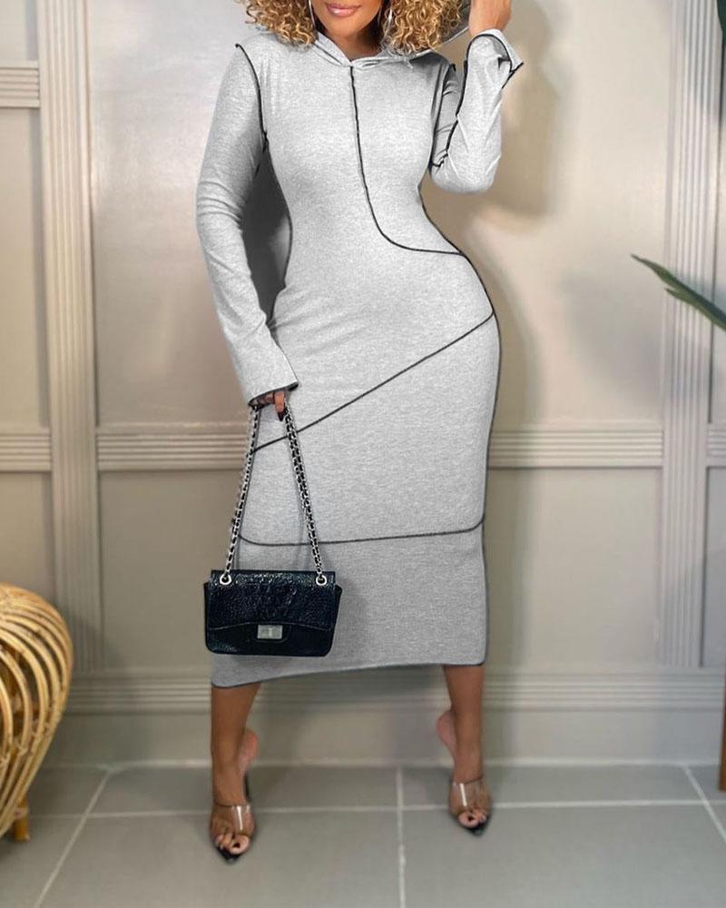 Long Sleeve Contrast Piping Hooded Sweatshirt Dress