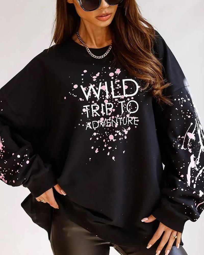 Ink Splash Letter Print Long Sleeve Sweatshirt