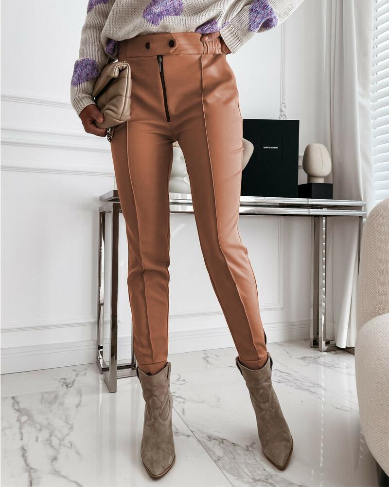 Style:Chic,Elegant Type:Work Pants Material:95%Polyester,5%Elastane Length:Long Pattern Type:Plain Decoration:Button,Pocket,Zipper Fit Type:Skinny Occasion:Daily,Work Package Include:1*Pants