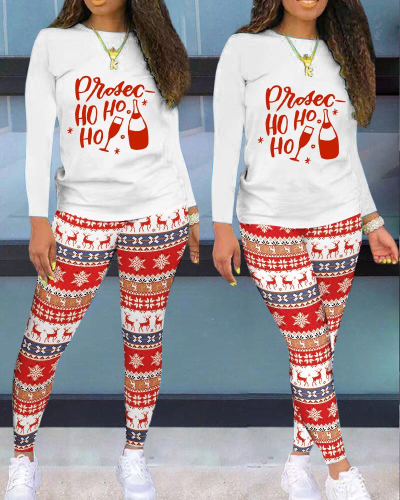 Style:Casual Type:Pants Sets Material:95%Polyester,5%Elastane Neckline:Round Neck Sleeve Style:Long Sleeve Length:Long Pattern Type:Christmas Fit Type:Skinny Occasion:Christmas Package Include:Pants Set