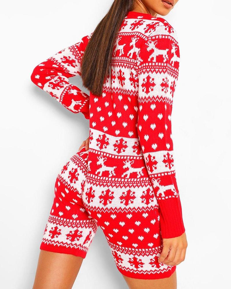 Style:Casual Type:Romper Material:Rib-Knit Neckline:Round Neck Sleeve Style:Long Sleeve Length:Above Knee Pattern Type:Animal,Christmas,Heart Decoration:Button Fit Type:Regular Occasion:Christmas Package Include:1*Romper