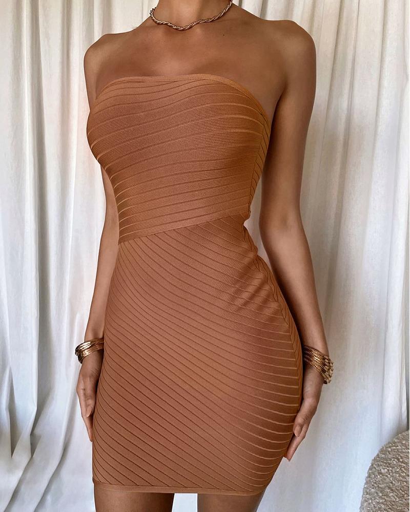 Style:Chic Type:Bodycon Material:Ribbed,97% Polyester,3% Spandex Neckline:Bandeau Sleeve Style:Sleeveless Length:Mini Pattern Type:Plain Fit Type:Skinny Occasion:Daily Package Include:1*Dress