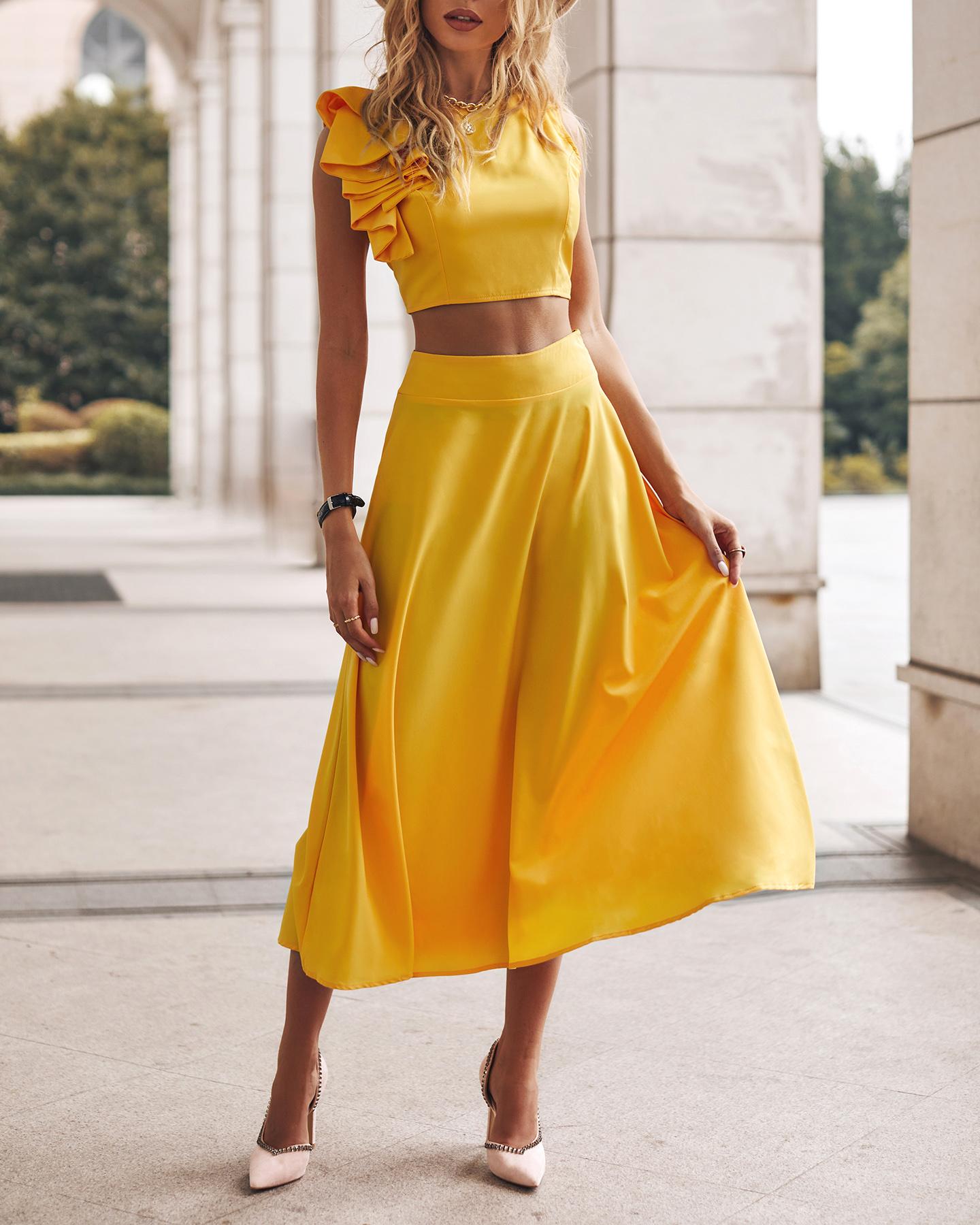 Ruffles Backless Crop Top & Maxi Skirt Set