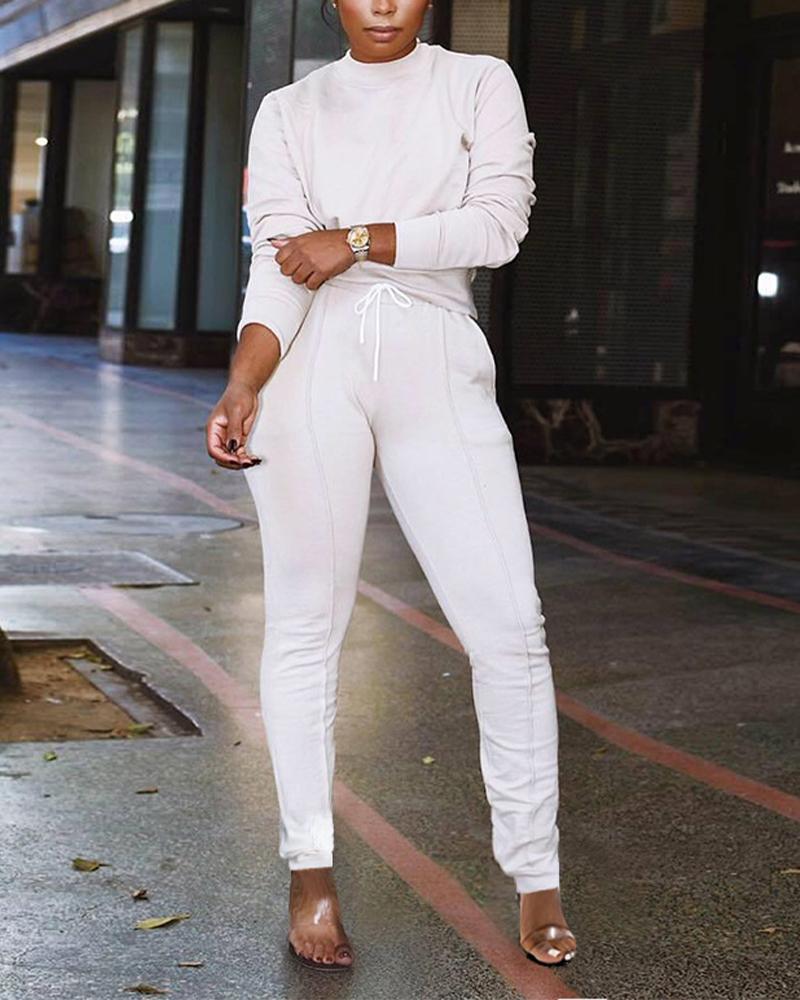 Style:Casual Type:Sweatpants Sets,Pants Sets Material:Polyester Neckline:Round Neck Sleeve Style:Long Sleeve Length:Long Pattern Type:Plain Decoration:Pocket Fit Type:Regular Occasion:Daily Package Include:Pants Set