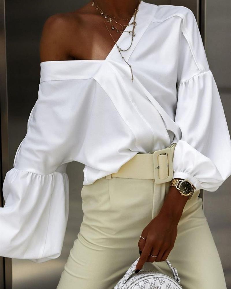V-Neck Lantern Sleeve Top