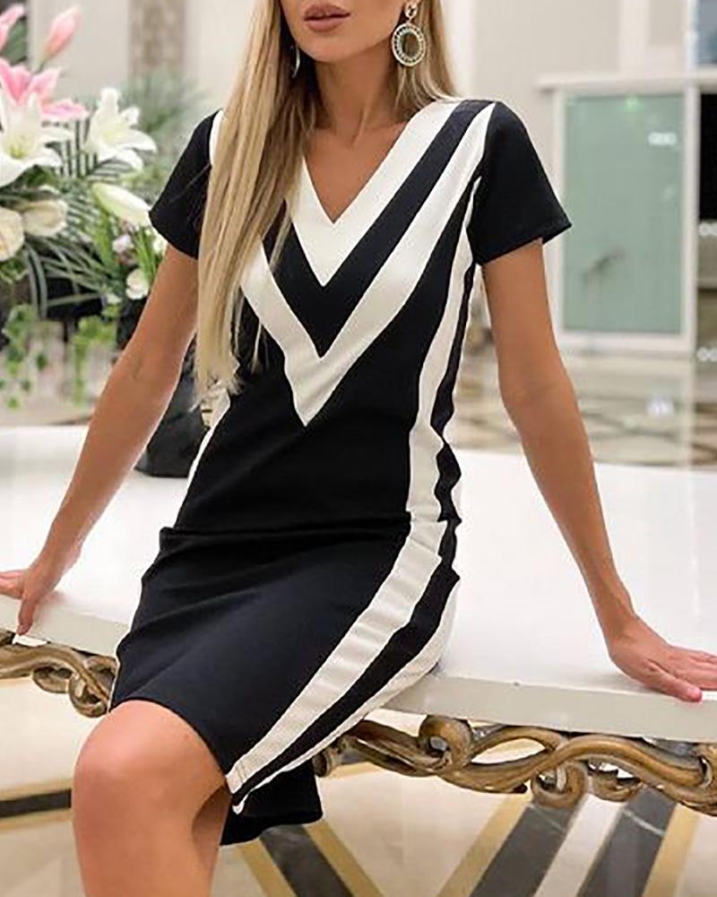 Style:Casual Type:Straight Material:95%Polyester,5%Elastane Neckline:V neck Sleeve Style:Short Sleeve Length:Mini Pattern Type:Striped Fit Type:Regular Occasion:Daily Package Include:1* Dress