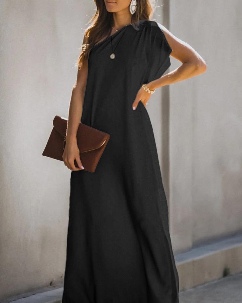 Style:Elegant Type:A Line Material:Polyester Neckline:One Shoulder Sleeve Style:Sleeveless Length:Maxi Pattern Type:Plain Fit Type:Regular Occasion:Party Package Include:1* Dress Note: There might be 2-3% difference according to manual measurement. Please check the measurement chart carefully before you buy the item. +Please note that slight color difference should be acceptable due to the light and screen.