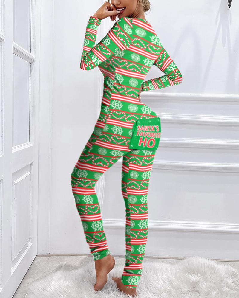 Christmas Print Functional Buttoned Flap Adults Pajamas