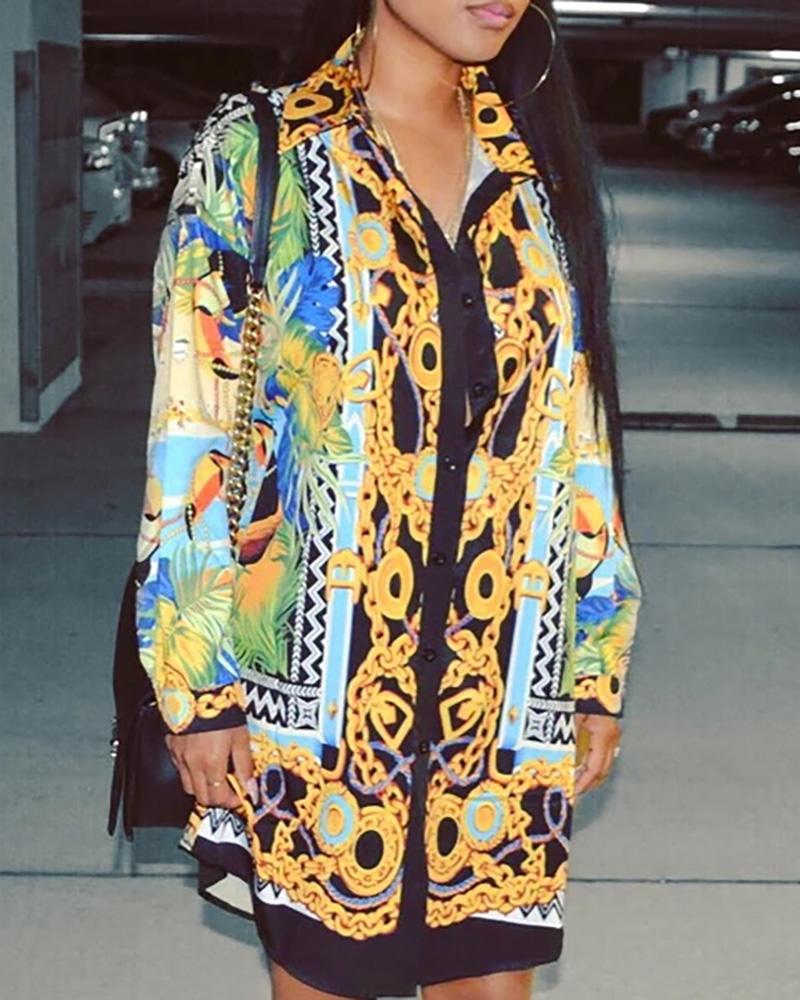 Style:Fashion Material:Polyester Neckline:Turn-down Collar Sleeve Style:Long Sleeve Length:Mini Pattern Type:Print Occasion:Casual Package Include:1* Dress Note: There might be 2-3% difference according to manual measurement. Please check the measurement chart carefully before you buy the item. +Please note that slight color difference should be acceptable due to the light and screen.