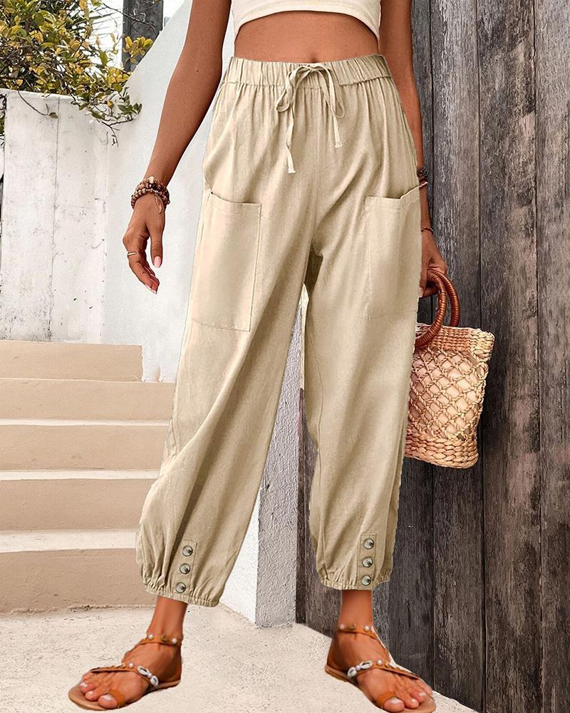 Style:Casual Type:Cuffed Material:Polyester Length:Long Pattern Type:Plain Decoration:Drawstring Fit Type:Regular Occasion:Daily Package Include:1*Pants Fabric Elasticity:Non-Stretch Sheer:No Care Instructions:Machine wash or professional dry clean Waist Line:High Waist