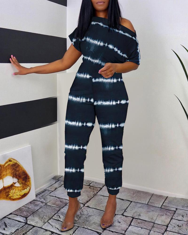Tie Dye Print Skew Neck Casual Jumpsuit