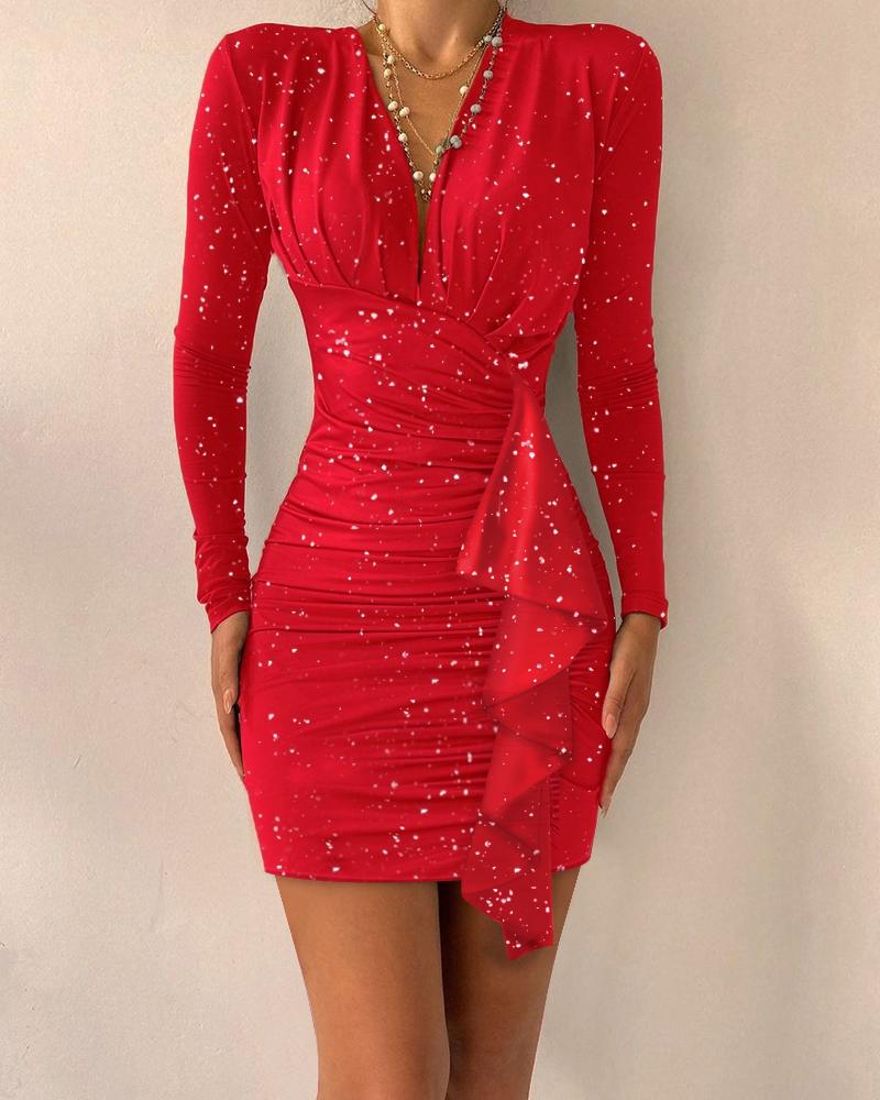 Glitter Long Sleeve Ruched Party Dress