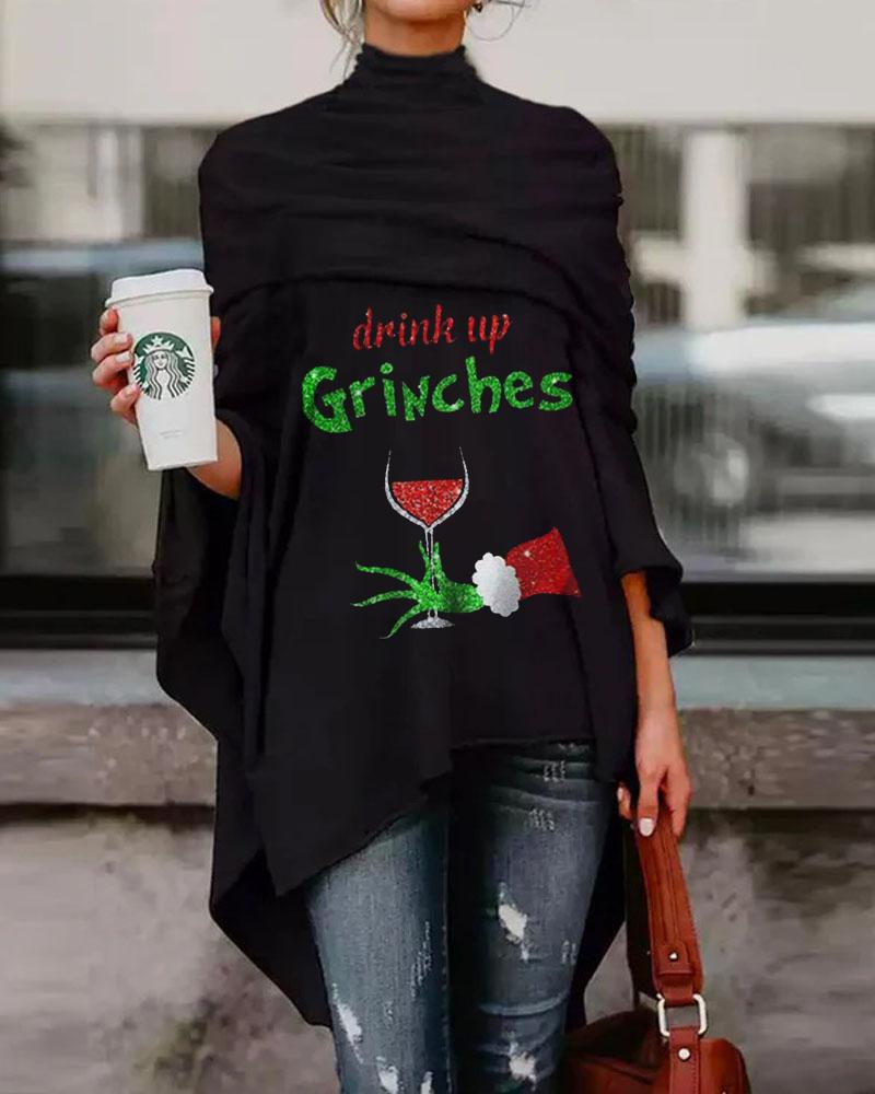 Style:Casual Type:Blouses Material:Polyester Neckline:Mock Neck Sleeve Style:Three Quarters Length:Asymmetrical Pattern Type:Christmas Fit Type:Regular Occasion:Christmas Package Include:1* Blouse