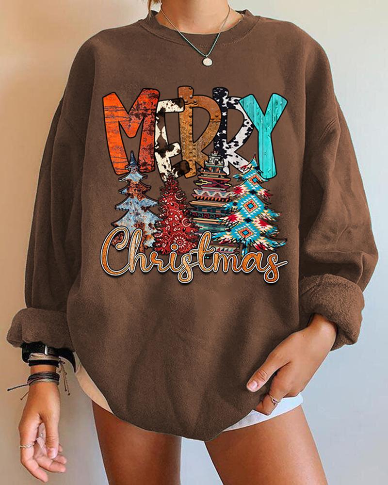 Christmas Tree Letter Print Long Sleeve Sweatshirt